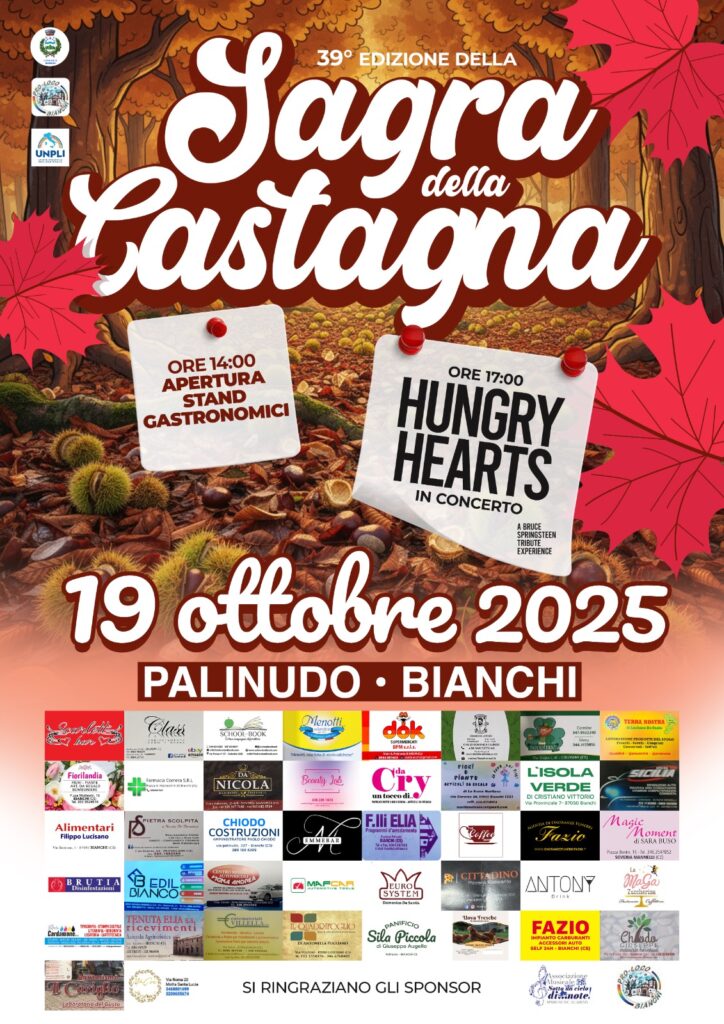 La tradizionale Sagra della Castagna, giunta alla 39esima edizione, non mancherà, anche quest’anno, di accompagnare e regalare una serata di buon cibo, buona musica e tanto divertimento a Bianchi. Il piccolo centro della Presila cosentina, infatti, sarà teatro, domani, 19 ottobre, a partire dalle ore 14, di un evento che si preannuncia, come sempre, scoppiettante come le buonissime caldarroste già pronte ad essere arrostite nella “rusellara”.