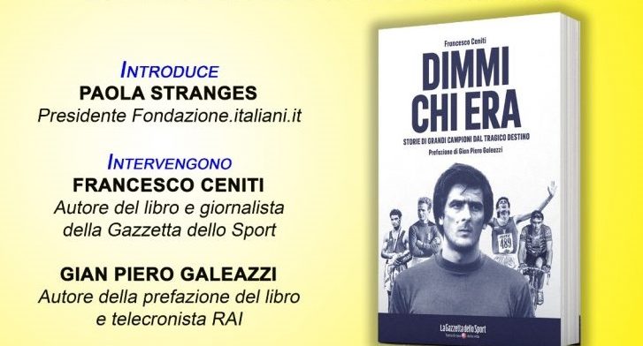 Alla presentazione sarà presente lo stesso autore del libro Francesco Ceniti, giornalista della Gazzetta dello sport; interverrà anche Giampiero Galeazzi, storico giornalista sportivo della Rai che ha firmato la prefazione di “Dimmi chi era”.