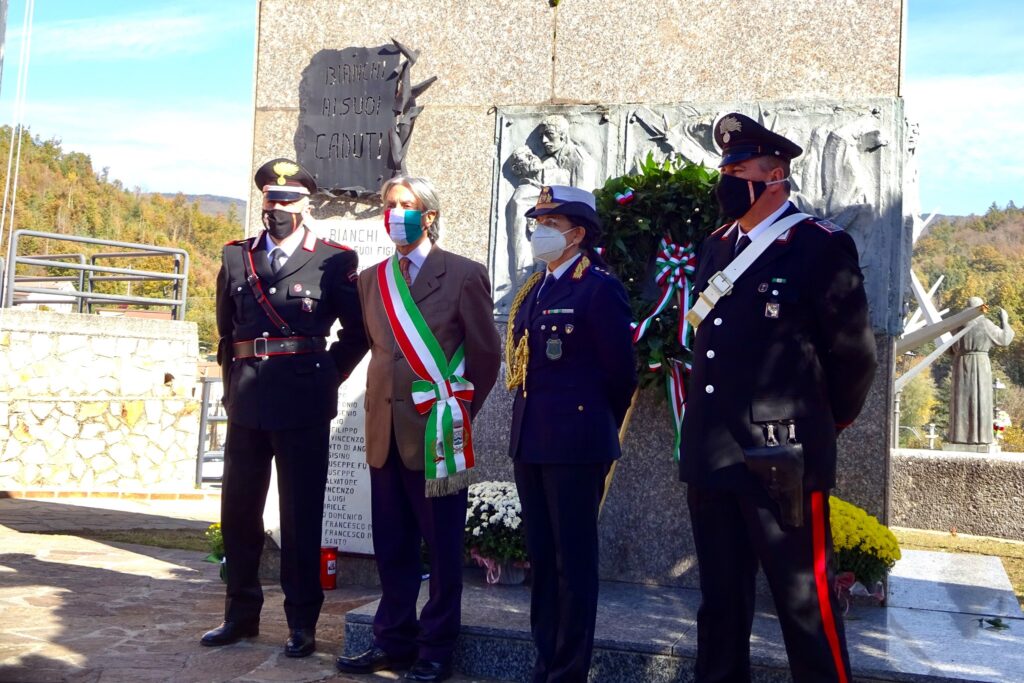L’amministrazione comunale di Bianchi nella Giornata dell’Unità Nazionale e delle Forze Armate, nel rispetto delle prescrizioni governative nonostante i tempi di coronavirus ricorda i suoi caduti e quelli di tutte le guerre. Alla messa ufficiata da don Giuseppe Trotta insieme al sindaco Pasquale Taverna hanno partecipato la giunta comunale, il maresciallo Domenico Millicelli della stazione Carabinieri di Colosimi in sostituzione di quello di Bianchi impegnato in altri compiti, la Polizia Municipale, le suore adoratrici Santissimo Sacramento e il coro parrocchiale.