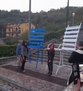 Forze dell’Ordine, rappresentanti delle associazioni, numerosi cittadini e don Giuseppe Trotta, parroco di Bianchi che ha benedetto i manufatti. Alla Consigliera comunale Valentina Perri, con delega alla promozione del territorio e all’assessore Erika Moraca con delega a Biblioteca e Pari Opportunità, il compito di tagliare il nastro tricolore. <<Col nuovo “pezzo del nostro museo all’aperto”- dichiara Valentina Perri, promotorice dell’iniziativa- si aggiunge un’altra sosta obbligata da fare quando si arriva a Bianchi. Le poltrone giganti con gli splendidi colori sociali del nostro amato Paese, il bianco e l’azzurro, sono manifattura “made in Bianchi” dal ferro al legno. Il