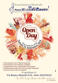 - Sabato 21 Settembre dalle ore 15:00 alle ore 17:00 OPEN DAY (aperto a tutti per Presentare Corsi, Maestri ed Associazione)