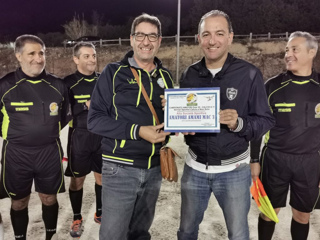 Nelle foto: il momento dei saluti fra i capitani nella gara fra il Lamezia Golfo e la FIORENTINA 10 BIS, alla presenza della terna arbitrale composta da Domenico RODIO, Pasquale SERRATORE e Domenico CONACI; la consegna della targa di partecipazione al campionato da parte del presidente Patrizio Gemello alle società FIORENTINA BIS e AMATORI AMAMI MAC 3.