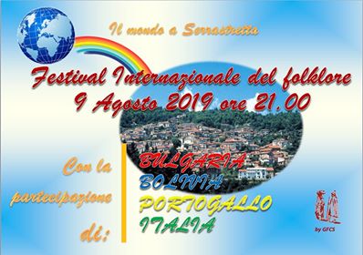 Il gruppo folclorico Canterini di Serrastretta, che quest’anno festeggia il suo 45° anniversario di attività, ha organizzato una nuova edizione del Festival Internazionale del Folklore che vedrà la partecipazione di grandi gruppi provenienti da oltralpe: PORTOGALLO (Grupo folclòrico Cancioneìro De Catanhede – Beria Litoral-Ganda), BULGARIA (Ensemble “Odessos” Varna), BOLIVIA (Ballet Libertad De Taija) nonché naturalmente dei padroni di casa, i Canterini di Serrastretta.