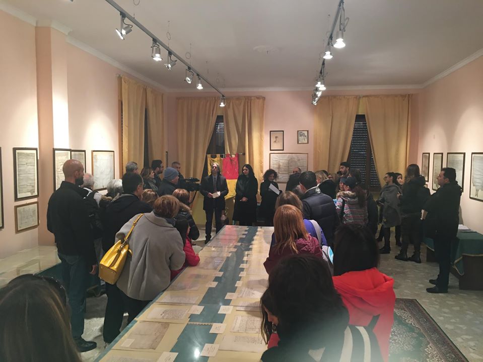 Prima tappa a Bianchi: l’amministrazione comunale e il sindaco Pasquale Taverna, ci hanno accolti e guidati nella visita allo splendido “Museo delle Pergamene ‘500″ che il Comune ha allestito con i numerosi documenti donati dalla famiglia Accattatis. Il sindaco nel porgere i saluti ha sottolineato che Bianchi oltre ad essere fiero del patrimonio culturale è orgoglioso di annoverare fra i suoi personaggi illustri il garibaldino don Ferdinando Bianchi e Pietro Bianco prima garibaldino e poi brigante. Il Museo delle pergamene e documenti storici, intitolato al cavaliere “Luigi Elvio Accattatis”, conserva cinquantacinque pergamene ed una consistente documentazione unica ed inedita la cui finalità è di non spezzare il filo della memoria e la storia.