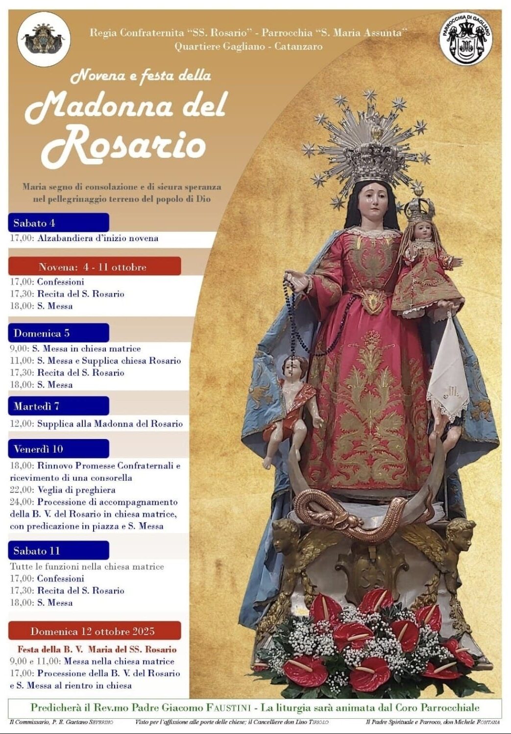 Con il rientro della processione religiosa nella Chiesa del SS. Rosario di Gagliano, ubicata dell’antica Ruga del Gonio, a Catanzaro si sono conclusi festeggiamenti della Festa della Madonna del SS. Rosario nella tarda serata di domenica 12 ottobre 2025.