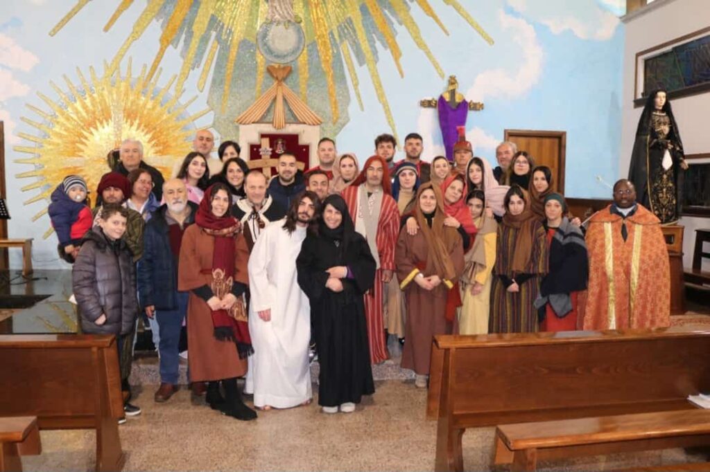 L’evento religioso ha visto la partecipazione di almeno 40 persone tra personaggi e figuranti con una verosimile ricostruzione artistica e scenografica, anche al prezioso contributo delle catechiste.