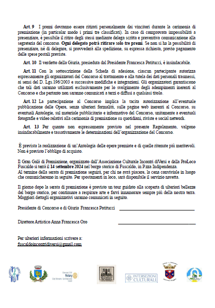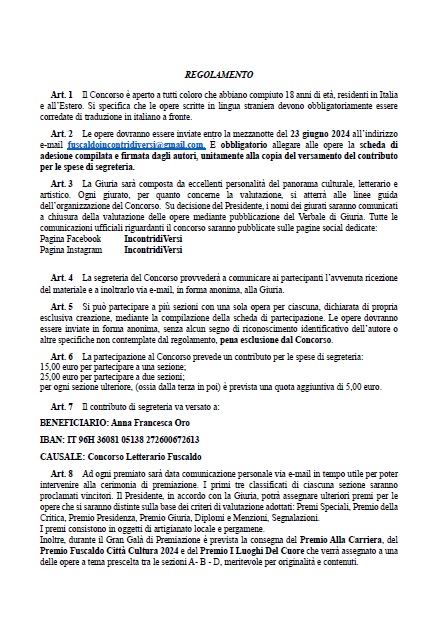 L’organizzazione è pronta per la II edizione del prestigioso Concorso Letterario Internazionale Città Cultura 2024 “Fuscaldo… incontri diVersi” che si terrà nel borgo storico di Fuscaldo, il 14 settembre 2024.