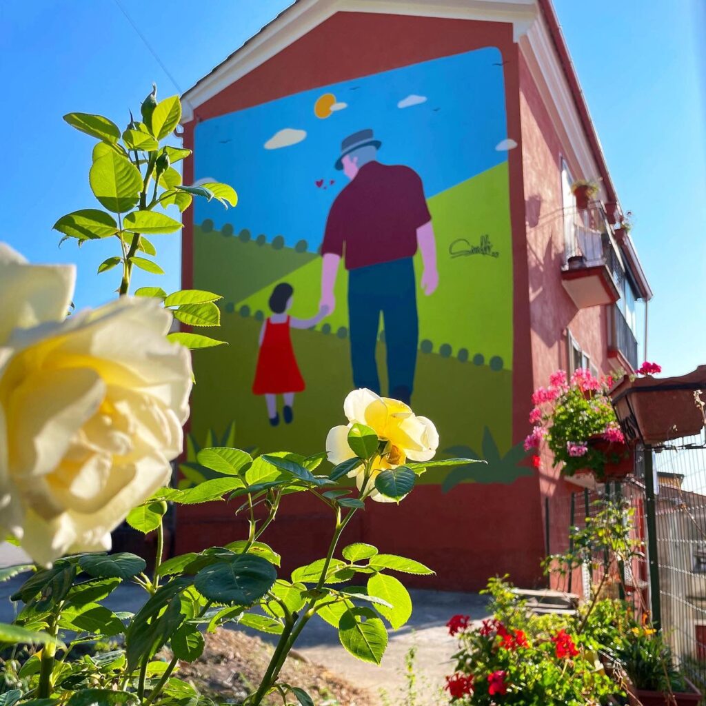 L’ opera, fortemente voluta dall’ Amministrazione comunale, interpreta il progetto “Legalmente” sostenuto anche dall’associazione “Libramenti”. La creazione artistica porta la firma di un artista di fama internazionale che risponde al nome di Massimo Sirelli. Duplice la lettura del murale: i valori ineludibili della famiglia e il prendersi cura di ideali importanti come legalità, onestà e integrità morale. Valori incarnati dall’edificante giudice Ferlaino, anche presidente della Corte di Appello di Catanzaro. Il magistrato è nell’immagine anche nonno. Vecchie e nuove affrontano idealmente un nuovo giorno, un giorno ideale da immaginare insieme senza violenza e all’insieme dell’amore.