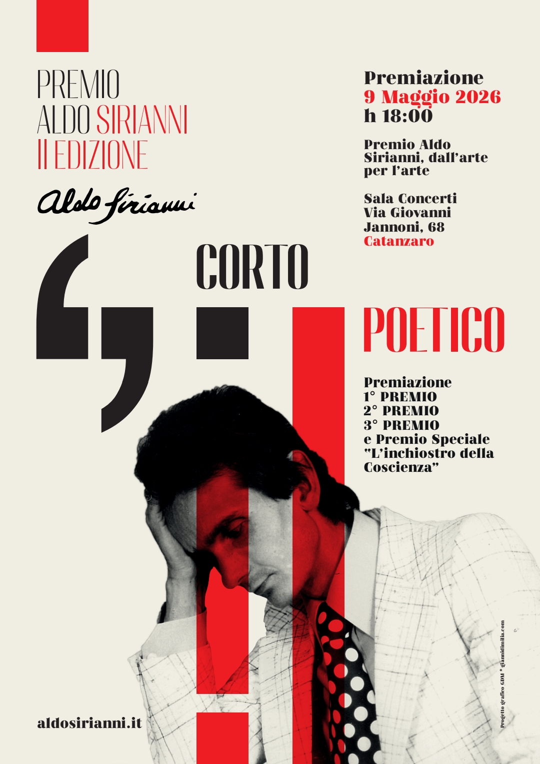 Torna il concorso artistico-letterario dedicato alla memoria di Aldo Sirianni, figura poliedrica di pittore, scultore e regista, che ha fatto della sperimentazione e della libertà espressiva il fulcro della sua carriera. Per la sua seconda edizione, il Premio lancia una nuova sfida creativa rivolta ai giovani di Catanzaro e provincia: “Corto Poetico”, un progetto che unisce linguaggio audiovisivo e scrittura poetica, configurandosi come una forma di urban art immateriale.