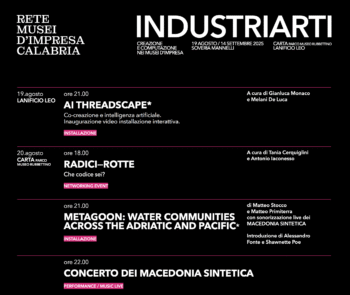 All’interno del ricco cartellone uno spazio significativo è occupato dal Museo e Parco d’arte contemporanea Rubbettino “Carta” che, in sinergia con il Lanificio Leo, offriranno a Soveria Mannelli una serie di iniziative che mettono insieme arte, riflessione, musica e “prove tecniche di futuro”. Il tema, “Creazione e Computazione nei Musei d’Impresa”, vedrà i due musei d’impresa – Carta e Leo – ospitare installazioni, performance, tavoli di co-design e proiezioni che mettono in dialogo l’eredità tipografica, libraria e tessile con le più recenti sperimentazioni digitali e computazionali.