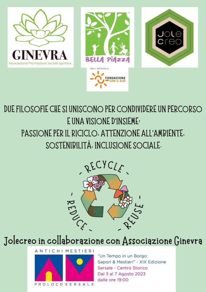 Ginevra e Jolecreo si uniscono in un sodalizio di collaborazione, con l’obiettivo di promuovere e sensibilizzare la comunità sull’importanza del riciclo e del riuso creativo.