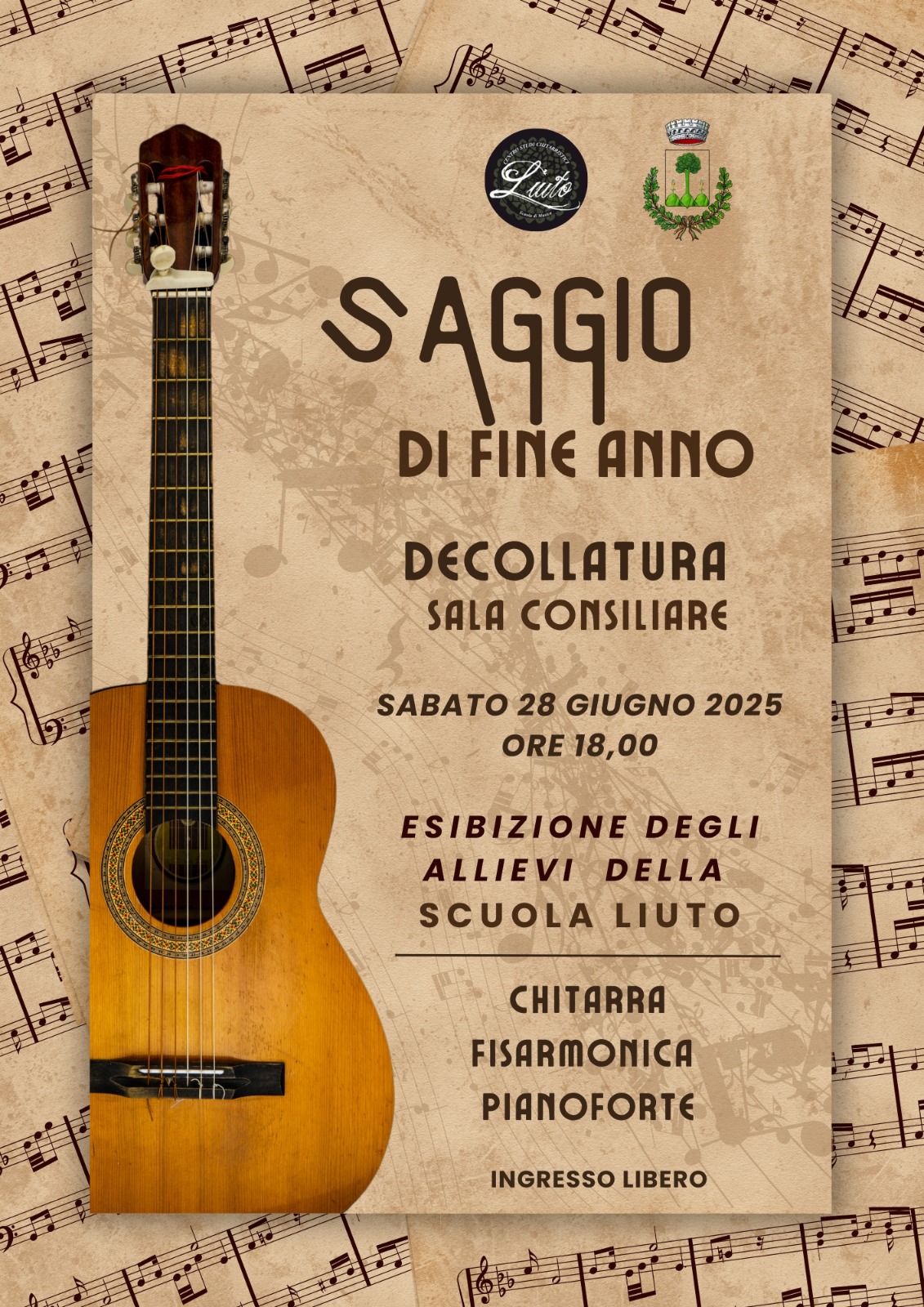 Come ogni anno, da 8 anni, la scuola di musica «Liuto», sede di Decollatura, presieduta dal M° Francesco Luca Laganà, organizza il saggio estivo di fine corsi.