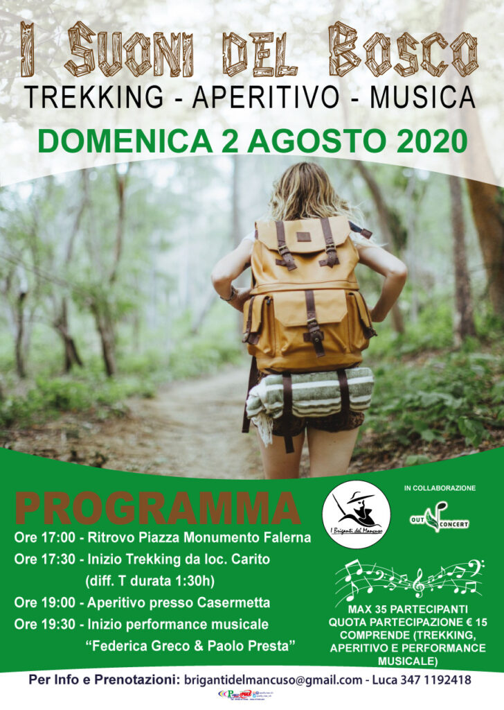 Si tratta – come informa il presidente Luca Mendicino – di un trekking accompagnato da un aperitivo e performance musicale del duo “Federica Greco & Paolo Presta” che fanno parte del collettivo “Out Concert”, l’appuntamento è programmato per la giornata del il 2 agosto 2020 sul Monte Mancuso.