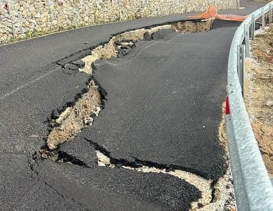 Come dimostra la fotonotizia le piogge incessanti delle ultime settimane hanno aggravato e cronicizzato un fenomeno di dissesto già presente e visibile sulla ex 109 tra Lamezia e Soveria Mannelli all’altezza di Platania, provocando un notevole distacco di circa 50 cm.