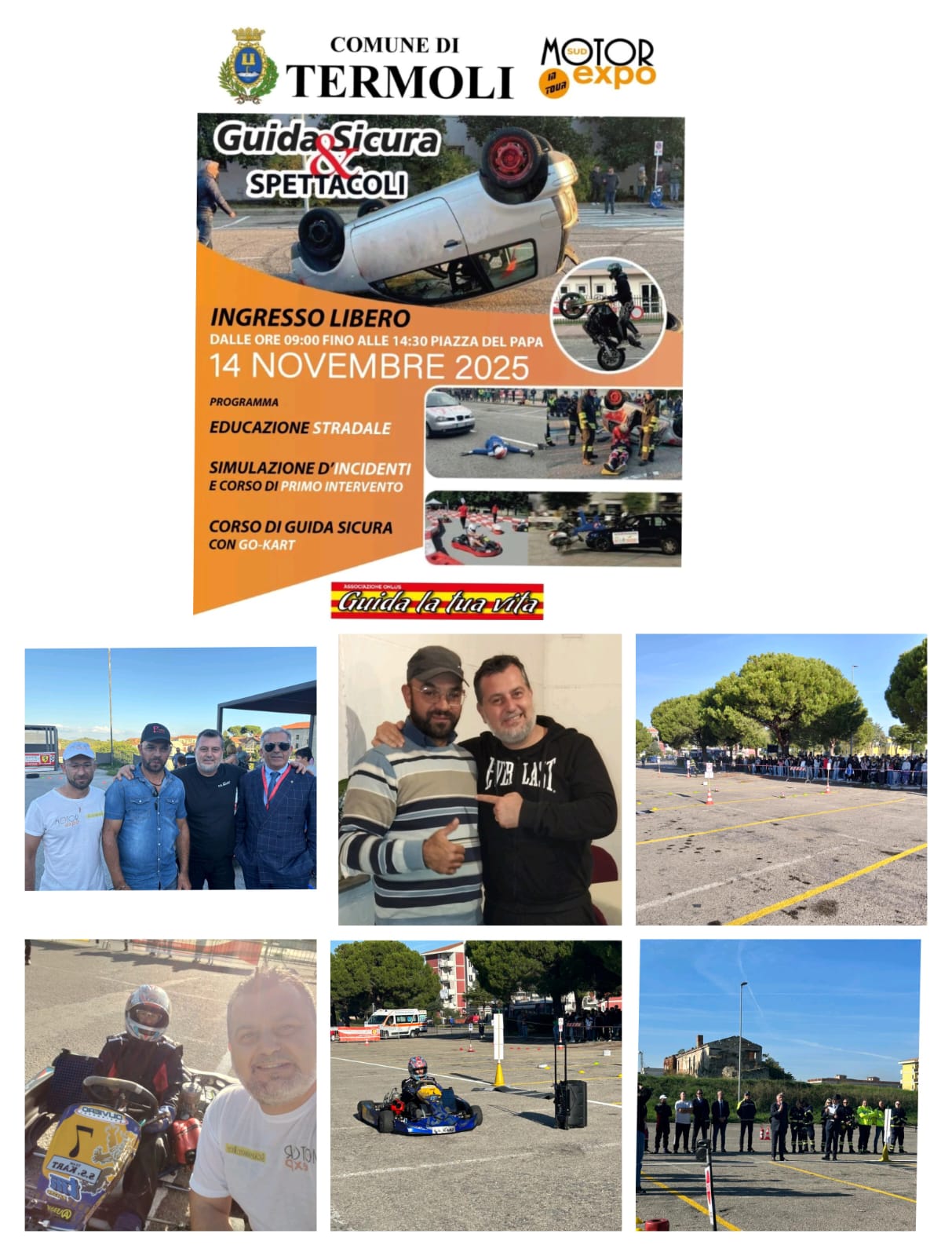 Un altro importante evento, svolto dall’associazione “Guida la tua vita” nella giornata di venerdì 14 novembre 2025 a Termoli in provincia di Campobasso in Molise, alla presenza del presidente Alberto Scaperrotta, l’istruttore Kart Giulio Sesa e i piloti Angelo Vincenzo e il lamentino Pasquale Vescio.