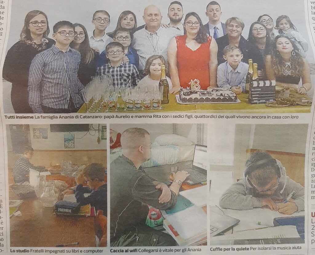 Il Corriere della Sera torna a occuparsi di una famiglia di Catanzaro: il giornale di via Solferino parla ancora una volta della famiglia Anania e dei sedici figli di Aurelio e Rita.