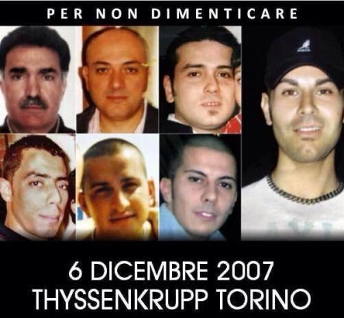 Perché ritengo che talune stragi hanno un retro-pensiero razzista?… Restiamo alla strage della ThyssenKrupp di Torino. Intanto, i sette morti (più un ferito e un sopravvissuto) sono operai … ovvero una categoria infima, ultima, spregevole quasi senza diritto alla dignità e persino alla vita. Gli operai possono essere immolati senza scrupoli, come fino a 80 anni fa si potevano disinvoltamente immolare nelle guerre europee e mondiali decine di milioni di persone non appartenenti all’aristocrazia o alla cosiddetta “razza padrona” che dispone senza pegno alcuno della vita e della morte del 99% del mondo.