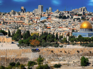 Storicamente, “l’ombelico del mondo” (come puoi meglio approfondire in Wikipedia o in altra più corposa enciclopedia o studio specialistico) è essenzialmente legato a fattori prevalentemente religiosi (che però hanno sempre nascosto valenze imperialistiche politico-economiche sostenute militarmente, come si può ben intuire). La Gerusalemme terrena e celeste, ad esempio, è ancora adesso ritenuta l’ombelico del mondo, ovvero il centro del mondo, almeno per le tre maggiori religioni monoteiste (ebraismo, cristianesimo e islamismo). Gli artisti si sono sbizzarriti nell’immaginarla, creando, comunque autentici capolavori.