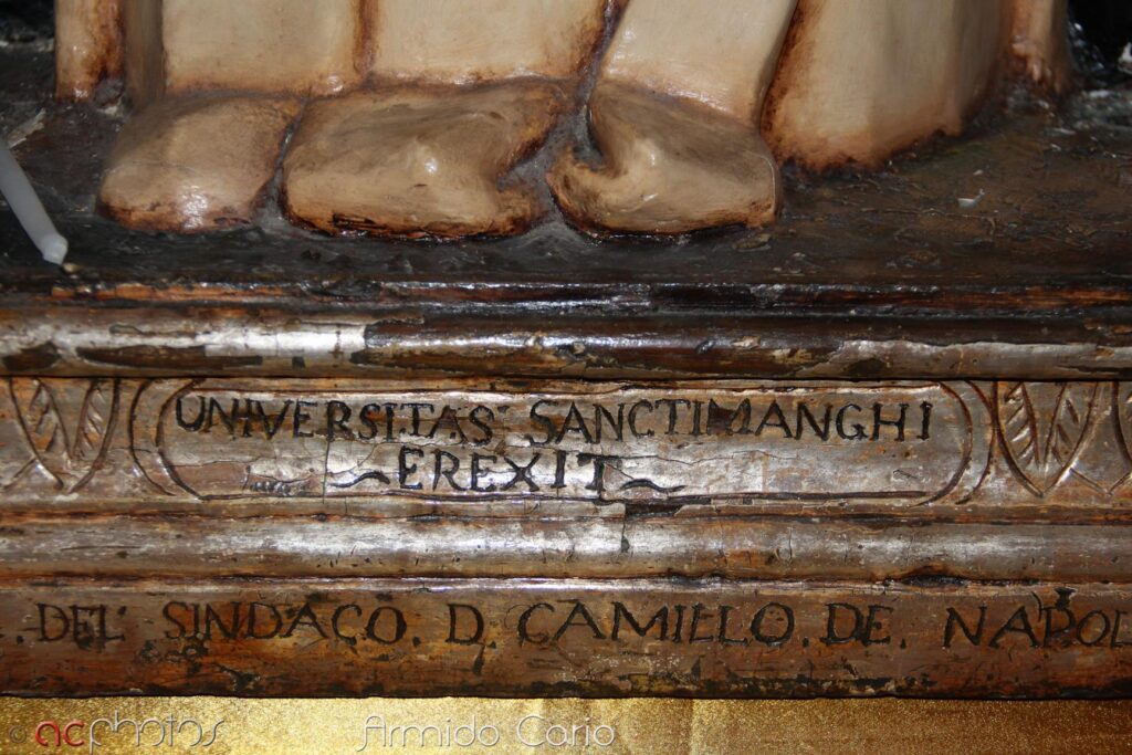 Il 1717 è dunque l’anno della svolta. Il territorio sul quale è sorto il centro abitato voluto dai d’Aquino non è più una pertinenza della baronia di Savuto. I cittadini di San Mango si costituiscono in Universitas Civium con un organo rappresentativo che è il Pubblico Parlamento e con un organo di governo che è il Reggimento. E il 6 marzo di quell’anno, alla presenza del vicario foraneo delegato dal vescovo di Tropea, viene benedetta a San Mango la statua di s. Tommaso (con alla base l’iscrizione Universitas Sancti Manghi); il giorno dopo, domenica 7 marzo, viene celebrata la prima solenne processione del Santo per le vie del paese.
