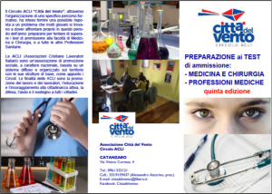 L’associazione Città del Vento di Catanzaro, aderente alle ACLI (Associazioni Cristiane Lavoratori Italiani), già da anni realizza corsi di preparazione ai test di medicina, proponendo: un Corso semestrale di 150 ore e un Test booster di 27 ore.