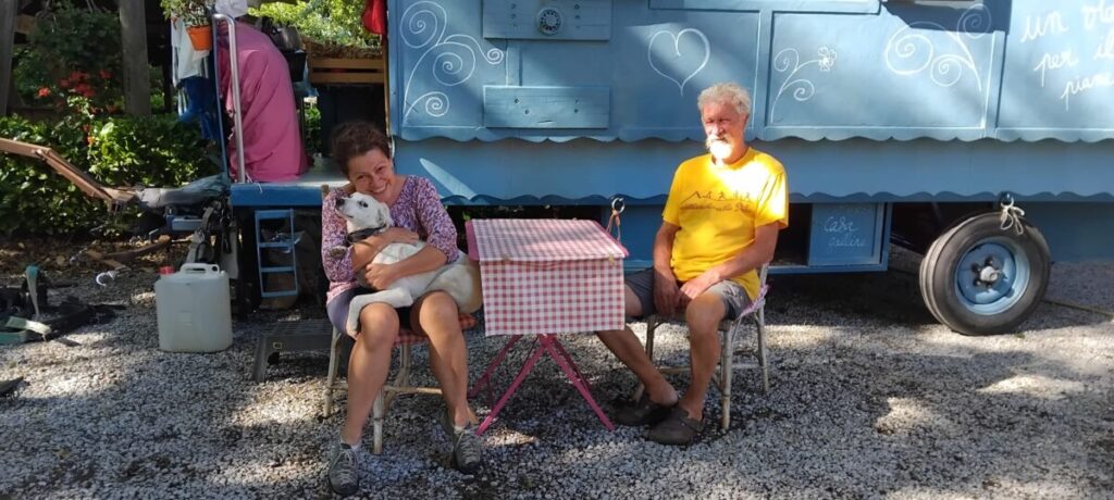 Una sorta di nomadismo d’altri tempi vissuto in una casa con le ruote trainata da due bellissimi cavalli, in cui convivono con un bel cane, 4 galline e un gallo, per avere sempre uova fresche. Insomma, uno stile di vita ormai fuori dal tempo che, però, consente loro di godere di tutto ciò che incontrano sul cammino, fatto di continui incontri, comunque sempre esperienziali.