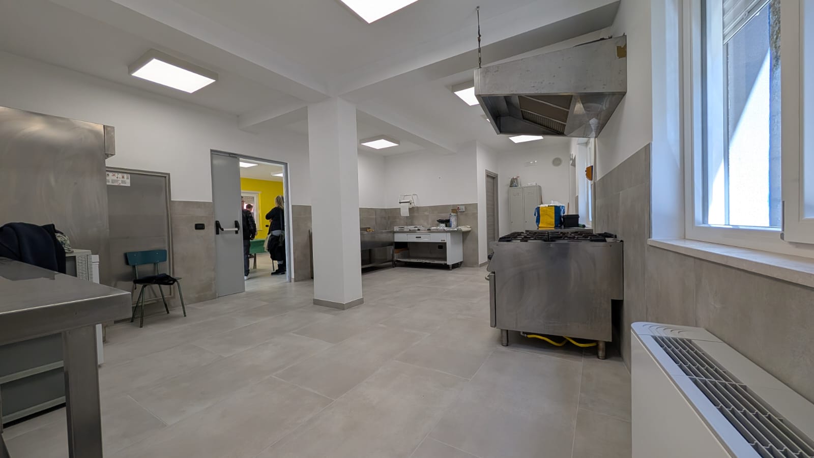 La nuova struttura, moderna e funzionale, è stata realizzata in un edificio autonomo situato nelle immediate vicinanze del plesso principale. È dotata di un’ampia sala mensa, di una spaziosa cucina con annesso spogliatoio e di un bagno attrezzato per studenti con disabilità.
