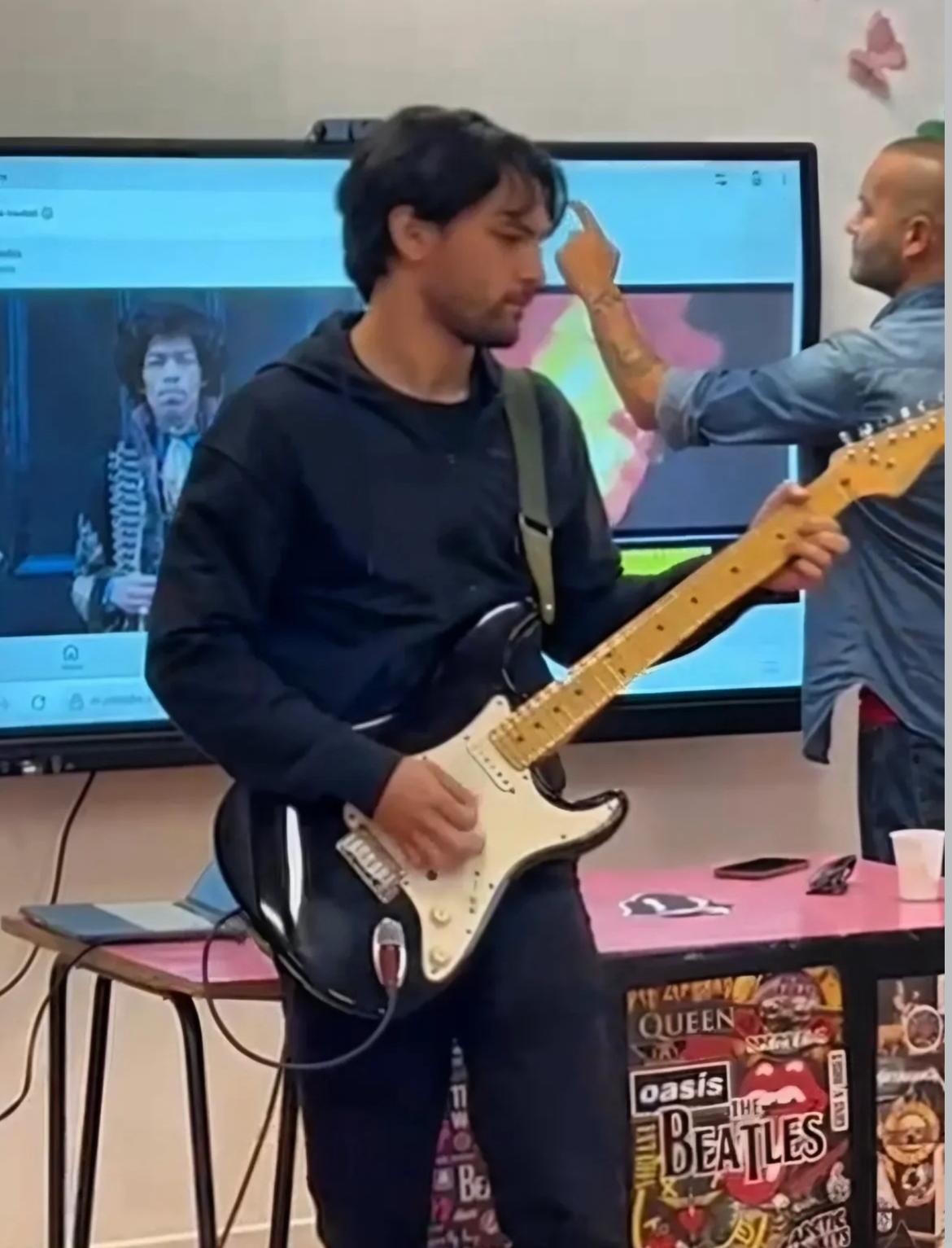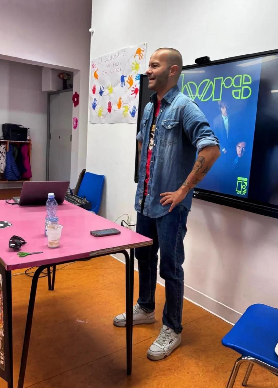 Le alunne e gli alunni hanno così potuto conoscere da vicino lo strumento più rappresentativo del rock’n’roll, la chitarra, e comprendere il significato del fare musica. Il critico, Francesco Sacco, ha poi saputo coinvolgere il giovane pubblico con passione e competenza, presentando un genere che è patrimonio culturale mondiale, sapendo unire teoria e pratica, tecnica e sensibilità.