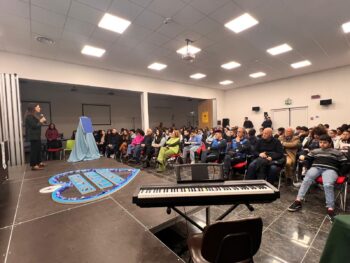 autistici di Genova con un robot umanoide in grado di interagire con loro, la lettura di un articolo di Susanna Tamaro, scrittrice affetta dalla sindrome di Asperger (una delle molteplici facce dell’autismo) e l’esecuzione del brano “Nel blu dipinto di blu”. Da segnalare tra il pubblico, accorso numeroso, anche la marescialla della Compagnia dei carabinieri di Soveria Mannelli, Claudia Lama. A conclusione dell’evento un momento conviviale con una bellissima torta realizzata da un’alunna e tanti altri dolci tutti rigorosamente fatti in casa.