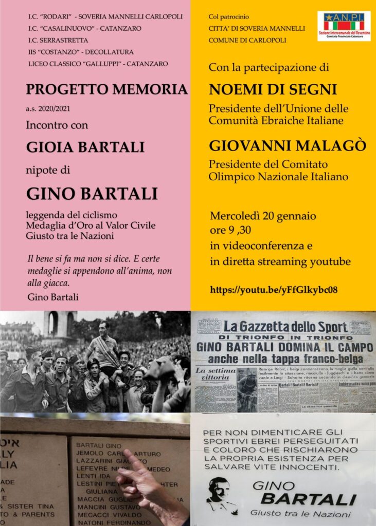 L’IC Rodari, con il suo “Progetto Memoria”, domani (mercoledì 20 gennaio) ricorda e celebra Gino Bartali non tanto in quanto campione del ciclismo ma come “Giusto tra le Nazioni”, per aver salvato la vita a centinaia di ebrei durante la Shoah. Ecco la locandina dell’evento, con orario, partecipanti e patrocinio: