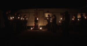 La risposta la darà presto il destino e nella veglia funebre si percepisce una tristezza infinita, ma composta, come un rito antico e quasi mistico, in un silenzio rispettoso che domina una scena ipnotica nel suo immobilismo. Una scena seguita da tre inquadrature di corde penzolanti, forse il filo metaforico al quale siamo, noi tutti, momentaneamente appesi, mentre il pianto di pura disperazione è riservato, nascosto agli sguardi che non potrebbero capirlo.