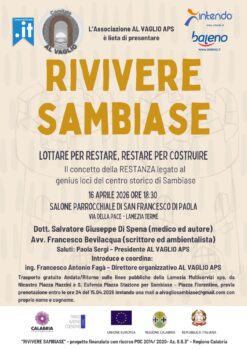 Nell’ambito del progetto “RIVIVERE SAMBIASE – Sentieri d’arte e cultura nel Centro Storico”, il prossimo Giovedì 16 aprile 2026, alle ore 18.30, nel salone parrocchiale di San Francesco di Paola, in Via della Pace, si terrà l’evento dal titolo “Lottare per restare, restare per costruire – il concetto della RESTANZA legato al genius loci del centro storico di Sambiase”, promosso dall’Associazione AL VAGLIO APS