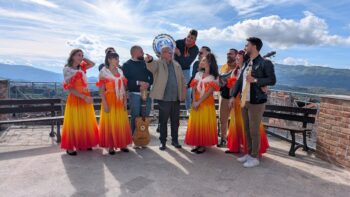 Ci congediamo alla fine del concerto, appositamente realizzato per la trasmissione di Paolo Marra, su questa splendida terrazza panoramica, illuminata da un sole splendente, con il Monte Reventino sullo sfondo e, poco più a destra, la foce del Savuto.
