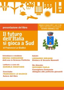 Le idee di Francesco Lo Giudice, giovane intellettuale, studioso dei fenomeni sociali e politici del nostro tempo, hanno portato una ventata di speranza nella sala dell’Officina della Cultura di Soveria Mannelli, che ha ospitato la presentazione del suo nuovo libro: “Il futuro dell’Italia si Gioca a Sud”.
