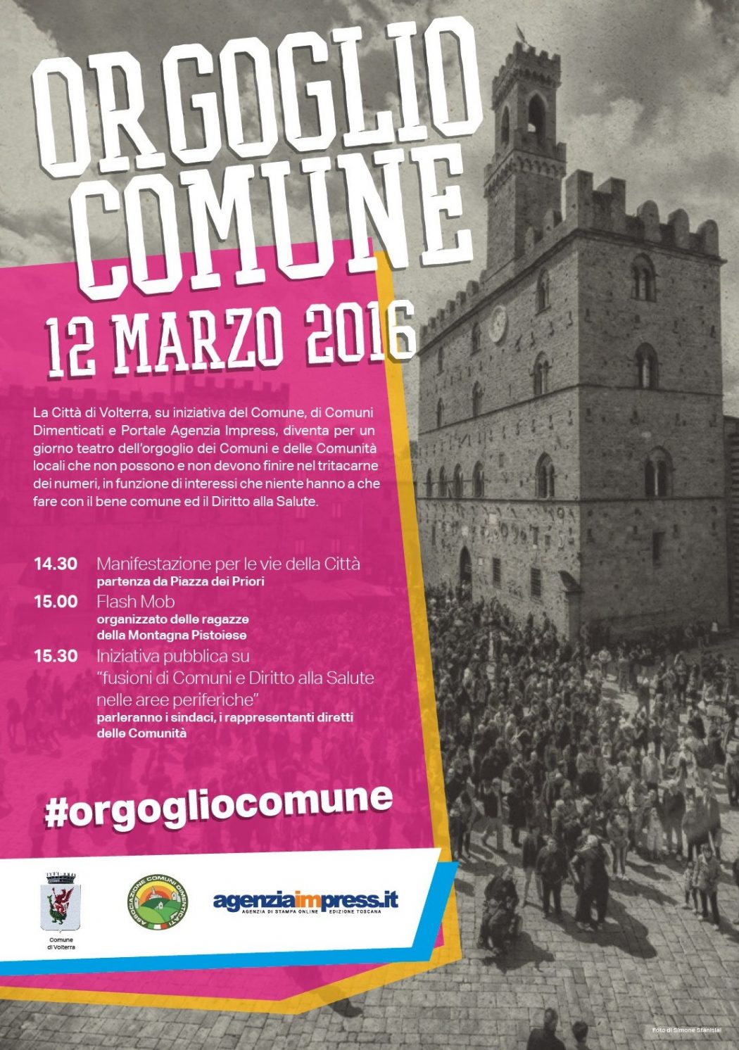 Si tratta degli “Stati Generali dei Comuni Dimenticati”, una Manifestazione nazionale a sostegno della Sanità pubblica, identità e territorio, che si terrà appunto a Volterra il 12 marzo 2016, denominata, in modo particolarmente significativo, “Orgoglio Comune”.