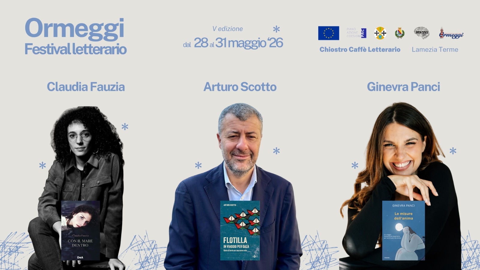 Dopo la pubblicazione delle date ufficiali della quinta edizione di “Ormeggi – Festival Letterario di Lamezia Terme” vengono comunicati i primi nomi degli autori ospiti di questo evento.