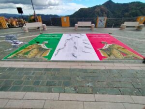 Ecco, come d’incanto, l’Italia costruita con le immagini dei giornali dell’ epoca e la bandiera tricolore con i nomi dei caduti dei due conflitti mondiali: un lavoro che non si improvvisa, un lavoro che ha rubato lo sguardo dei numerosissimi astanti.