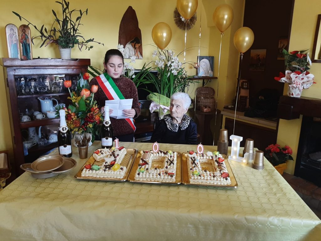 Ai festeggiamenti per la veneranda età di Letizia hanno preso parte, il parroco don Giorgio e i componenti del Consiglio comunale dei ragazzi e delle ragazze, rappresentati dalla consigliera, con delega alla creatività e bellezza, Selene Scalzi.