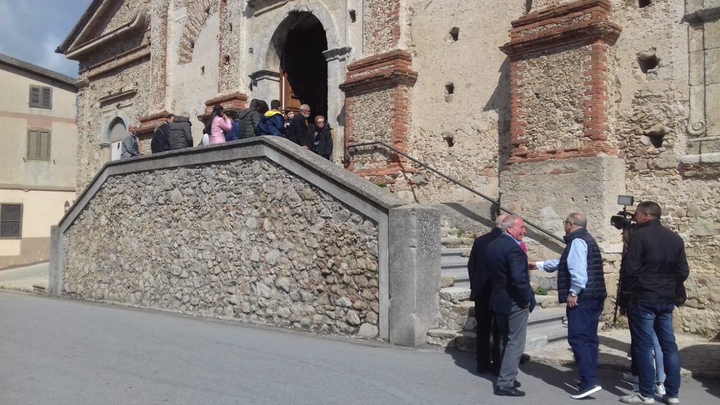 Finalità della protesta: abbattere le barriere architettoniche del luogo di culto del paese, collocando una porta di legno lungo una facciata laterale. Il progetto c’è già: ha messo nero su bianco, poco prima di un destino avverso, l’ingegnere Rodolfo Carpino, professionista stimatissimo, anche in ambienti accademici, per smisurata cultura e umanità. Anche la porta c’è già, è anche bella, di ottima manifattura, ma è lì ferma nella navata laterale a prendere polvere da più di due anni: la Sovrintendenza di Cosenza, sezione beni culturali, dice che non si può mettere. Motivo: altera il valore storico-artistico del luogo di culto.