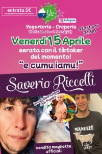 Il tik toker del momento Saverio Riccelli incontrerà venerdì prossimo, 15 aprile 2022, i tanti follower di Petronà e dei paesi vicini.