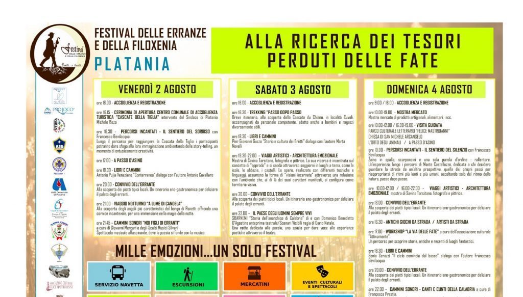 “La nostra è una manifestazione giovane, ma che in questa seconda edizione registra importanti passi avanti – ha spiegato l’architetto Paolo Nicolazzo Presidente della Pro Loco Platania. Per un vero salto di qualità, è fondamentale favorire la creazione di una rete territoriale per superare i confini ed unire tutti i luoghi interessati dal festival. Quest’anno con il coinvolgimento delle zone rurali, infatti, accendiamo una luce sui piccoli borghi e le aree più interne e sconosciute e con la partecipazione di ragazzi diversamente abili vogliamo sensibilizzare tutti verso un’accoglienza che vada oltre il significato letterale.”