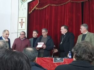 Si è passati così ai Premi alla Memoria – Per non dimenticare. Il primo consegnato dall’ Arcivescovo Mons. Claudio Maniago e dal sindaco di Cropani Raffaele Mercurio alla memoria di Ciccio Chiaravalloti (Sindaco di Cropani dal 1965 al 1975) “Storico amministratore comunale”. Hanno ritirato il doveroso riconoscimento i figli Claudio e Ambrogio Chiaravalloti. Claudio fra le altre cose ha ricordato che cercando fra i documenti del papà, per la pubblicazione di un libro, ha trovato lettere alle più alte cariche dello Stato scritte da Francesco (Ciccio) Chiaravalloti per risolvere i problemi del Comune di Cropani. L’attuale primo cittadino di Cropani, Geometra Raffaele Mercurio, dopo avere salutato le autorità politiche, civili, culturali, militari e religiose ha ampiamente e in modo efficace ricordato Ciccio Chiaravalloti che ha vissuto da protagonista, dagli anni 50 agli anni 80 del ‘900. “Animatore e dirigente delle lotte dei braccianti e dei contadini – ha rimarcato il sindaco Raffaele Mercurio – per la conquista della dignità e della terra nella seconda metà del secolo scorso, è stato fondatore e dirigente dell’Alleanza dei Contadini della Calabria nonché presidente.