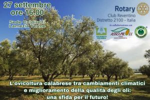 Un nuovo e imperdibile incontro è quello che intende realizzare venerdì 27 settembre il Rotary Club del Reventino. A partire dalle ore 16.00, presso la sede Coldiretti di via Massimo D’Antona, a Lamezia Terme, i soci del club affronteranno una tematica a loro molto cara: l’olivicoltura calabrese tra cambiamenti climatici e miglioramento della qualità degli oli.