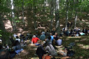 Lasciate le auto, un primo gruppo di partecipanti effettuerà una breve escursione narrata, con Francesco Bevilacqua e Giuseppe Paletta, nella Faggeta di Condrò. Il percorso è di cinque km ed è adatto a tutti ma sono necessari scarponcini da trekking ed abbigliamento adatto.