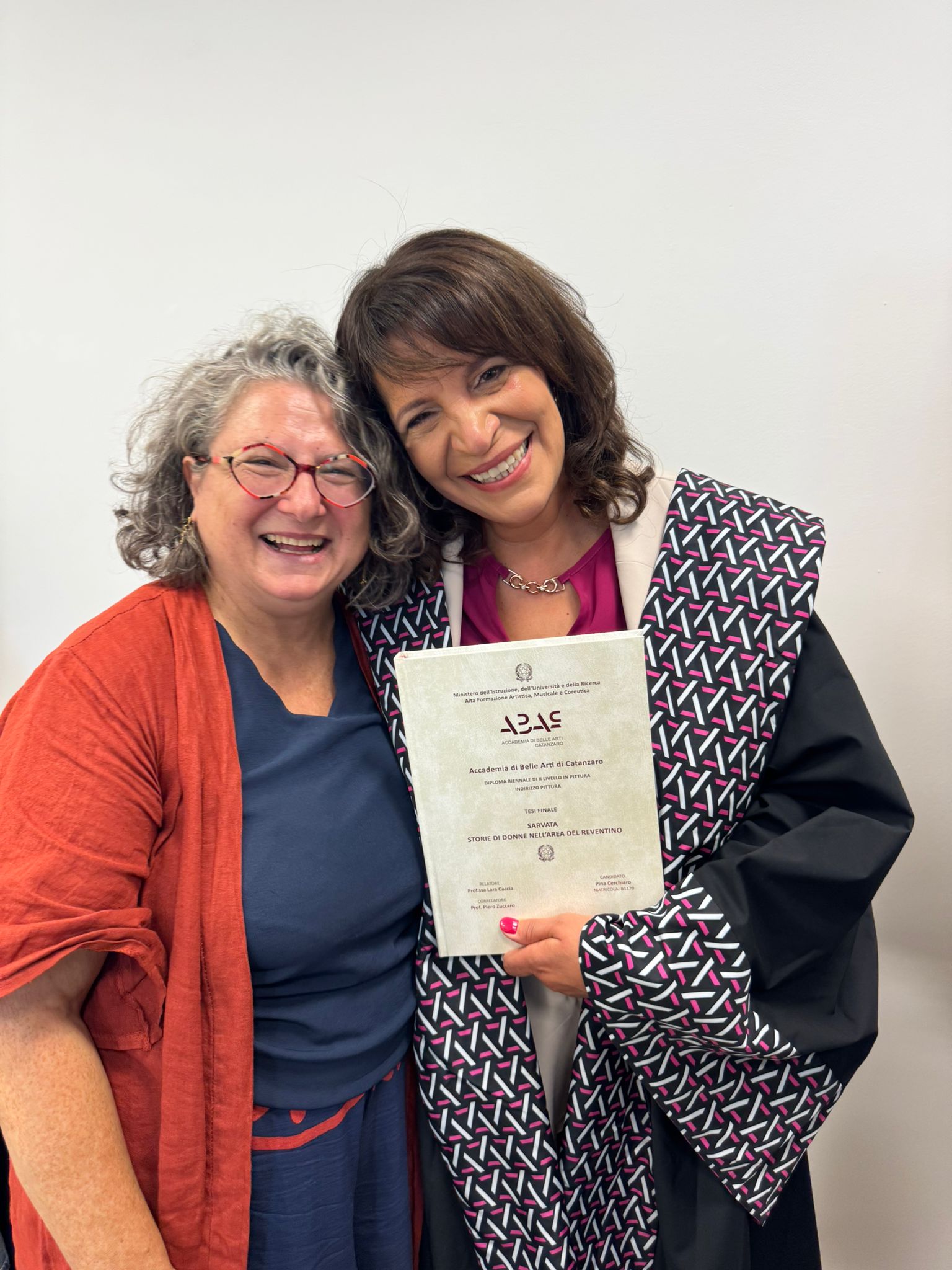 A quasi tre anni dalla suggestiva laurea condivisa tra zia e nipote — Pina Cerchiaro e Giuseppe Antonio Bagnato, avvenuta il 5 dicembre 2022 — infatti, Pina Cerchiaro ha concluso con lode il biennio di specializzazione in Pittura presso l’Accademia di Belle Arti di Catanzaro, presentando una tesi dal titolo