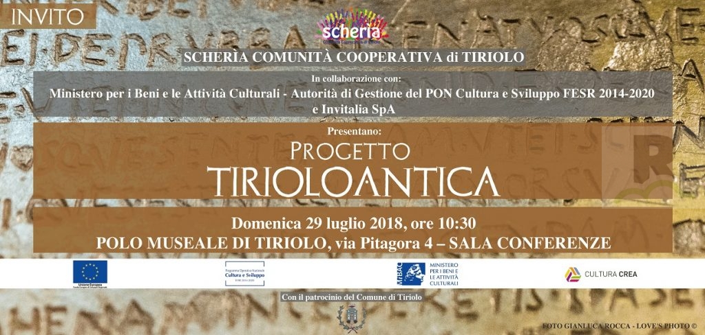È questa la sfida lanciata circa due anni fa dal Ministero per i Beni Culturali e da Invitalia SpA ed accolta da Scherìa, Comunità Cooperativa di Tiriolo. Questa la scommessa e l’investimento che racconteranno la dottoressa Dora Di Francesco (Dirigente dell’Autorità di Gestione del PON Cultura e Sviluppo FESR 2014-2020), il dottor Vittorio Fresa (Dirigente di Invitalia SpA) ed il dottor Ricardo Stocco, Presidente di Scherìa, Comunità Cooperativa di Tiriolo. L’incontro, patrocinato dal Comune di Tiriolo, si terrà Domenica 29 Luglio, alle ore 10:30 presso la Sala Conferenze del Polo Museale di Tiriolo e sarà introdotto dai saluti del Sindaco, prof. Domenico Stefano Greco, del Direttore del Museo Archeologico, prof. Paolo Brocato e della Senatrice Margherita Corrado, VII Commissione (Cultura) del Senato.