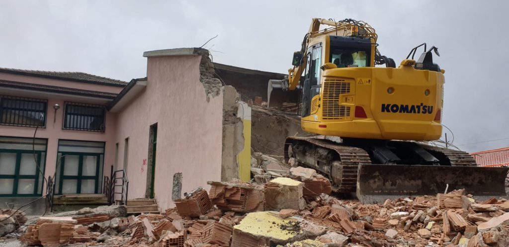 Scigliano – Con la recinzione del cantiere è stato dato l’avvio ai lavori. Inizia, con la demolizione di parte della precedente struttura, la riqualificazione e adeguamento sismico del plesso scolastico sito in Via Monacelli nella frazione Calvisi.