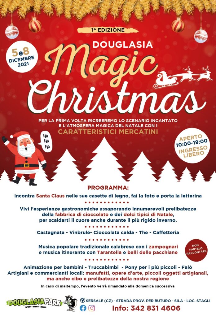Grandi le aspettative: si farà di tutto per non deluderle. Location sarà la Sila piccola, precisamente presso il Douglasia park, in località Stagli, sulla strada provinciale per Buturo, dove si terrà la prima edizione della rassegna natalizia denominata “Magic Christmas”.