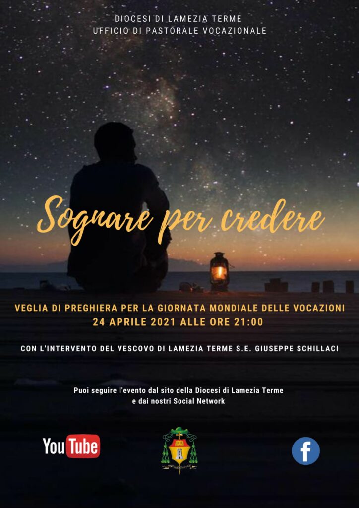 E’ previsto per sabato 24 aprile l’incontro “Sognare per credere“, promosso dalla diocesi di Lamezia Terme. Una veglia di preghiera, con l’aiuto della tecnologia e del mare della rete, per la giornata mondiale delle vocazioni.