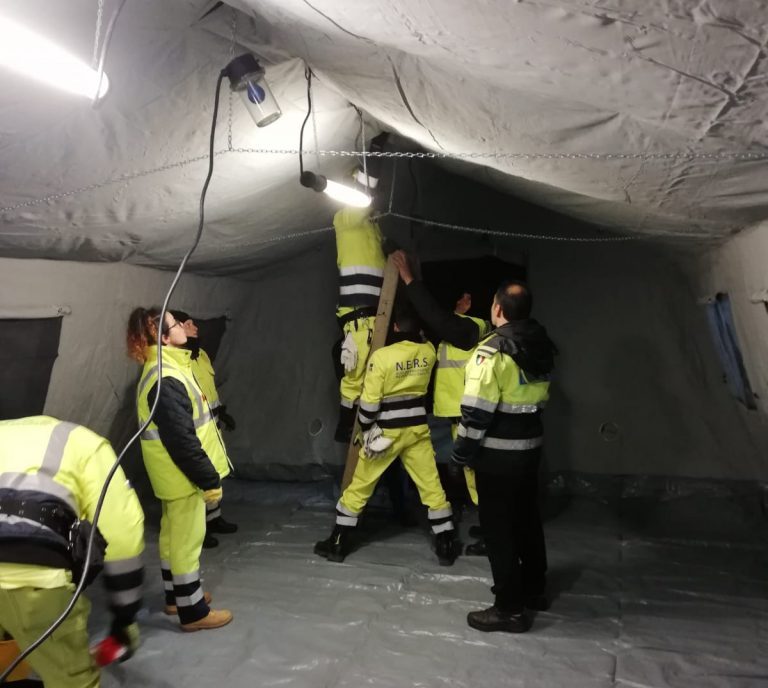 La struttura è stata installata dai volontari della Protezione Civile del gruppo Nucleo Emergenze Reventino – Savuto (NERS).