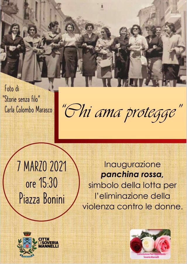 L’iniziativa promossa – rileva una nota pervenuta in redazione – dalla Commissione Pari Opportunità del Comune di Soveria Mannelli, presieduta dall’avvocato Angela Davoli, è supportata dalla civica amministrazione sempre sensibile e attenta alla situazione femminile sul territorio ed alla lotta contro ogni forma di violenza e coadiuvata dall’assessore alle Politiche Sociali e Pari Opportunità Maria Francesca Pascuzzi. Una panchina rossa sarà installata ed inaugurata nella giornata di domenica 7 marzo 2021, con inizio alle ore 15,30.